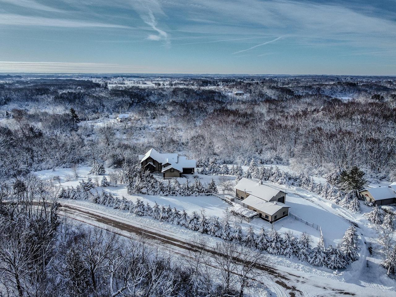 Introducing a breathtaking country estate nestled in Elkhorn.This remarkable property spans across an impressive 10 acres, offering privacy and tranquility.With 5,700 sqft of living space,this home features 5 bedrooms,3&1/2 bathrooms and a 5 car garage,providing ample space for family/guests to unwind.Situated minutes from Lake Geneva and in close proximity to Lauderdale lakes, this home offers the perfect location for outdoor enthusiasts.A standout feature is the pole barn, thoughtfully designed to accommodate an RV and all your recreational toys.The meticulously landscaped grounds provide the most serene backdrop.Custom-built in 2000,this estate is a rare find that seamlessly blends comfort,elegance,and natural beauty.Don't miss your chance to make this magnificent estate your very own.